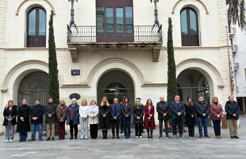 A dos quarts d'una del migdia, prop d’una vintena de persones s’han concentrat a la plaça de la Vila en solidaritat amb les víctimes i els afectats per la llevantada. Han recordat la mort d'un maquinista de 28 anys que ha mort a Gelida arran de la caiguda d’un mur de contenció sobre el tren de l'R4, i la d'un home arrossegat dins el cotxe per la riera a Palau-sator, al Baix Empordà. Al minut de silenci hi han participat membres del govern i de l'oposició.