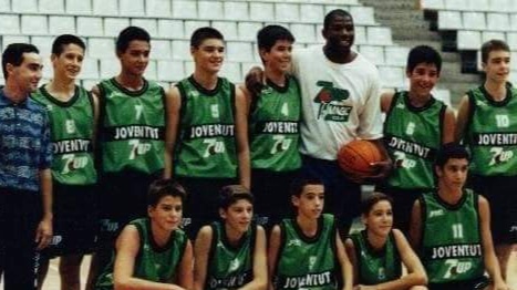 Va ser en un acte publicitari quan la llegenda nord-americana va tornar a Badalona on ja havia estat el 1991 per seguir les obres de construcció del Palau Olímpic i també el 1992 on es va coronar campió olímpic en guanyar amb el mític Dream Team. En aquell partit on es va enfrontar amb la Penya hi havia jugadors que eren amics seus com l'exLakers Kurt Rambis o l'exNBA i ex-Penya Keith Owens que va ser el màxim anotador amb 27 punts en un partit que van guanyar els nord-americans per 86 a 112. Un dels que va viure in situ aquella fita va ser Miquel Àngel Forniés, excap de premsa del Joventut en aquella època i qui ho va poder inmortalitzar com a fotògraf, la seva altra gran passió.