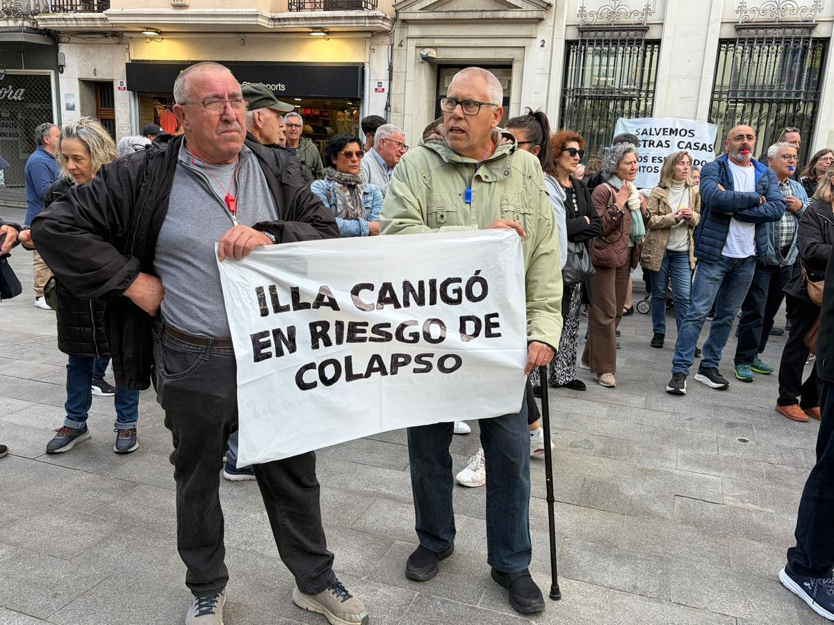 Els afectats recorden que no demanen “que els regalin res”, sinó poder accedir a finançament en condicions assumibles. És a dir, demanen uns crèdits tous per poder fer front al cost de les obres, que supera els 500.000 euros per cada bloc. Un cost que molts dels seus residents no poden assumir sense un cop de mà. Així ho ha reclamat des de la plaça de la Vila un centenar de veïns, entre ells la Montse Palazón, veïna del número 13 del Canigó. També critiquen que les assegurances no cobreixen els danys, en considerar-los estructurals, i que l’única actuació municipal ha estat un apuntalament d’emergència inicial que ha acabat recaient econòmicament en els propietaris. Des de fa un any, diuen, no reben cap resposta per part de l’Ajuntament.