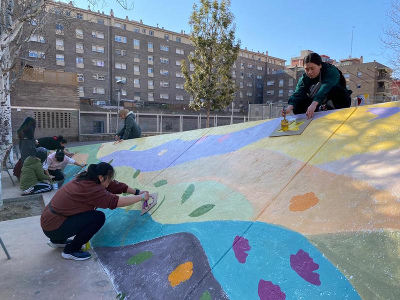 Sota el lema "Juntes fem art al carrer", alumnes de l'escola Lestonnac i joves de la cooperativa ISOM han pintat aquest dissabte un mural a la Plaça de les Brigades Internacionals. L'activitat, on també hi ha col·laborat l'entitat Dones Llefià, s'ha dut a terme en el marc del Dia Internacional de les Dones. També hi ha hagut una batucada a càrrec del grup Kapomba.