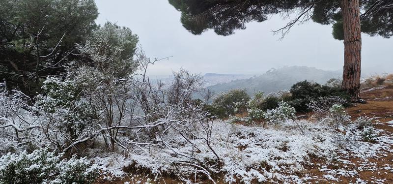 Badalona s'ha despertat aquest dilluns amb neu a la part alta del municipi. La Serralada de Marina ha quedat emblanquinada per sobre la cota dels 250 metres.